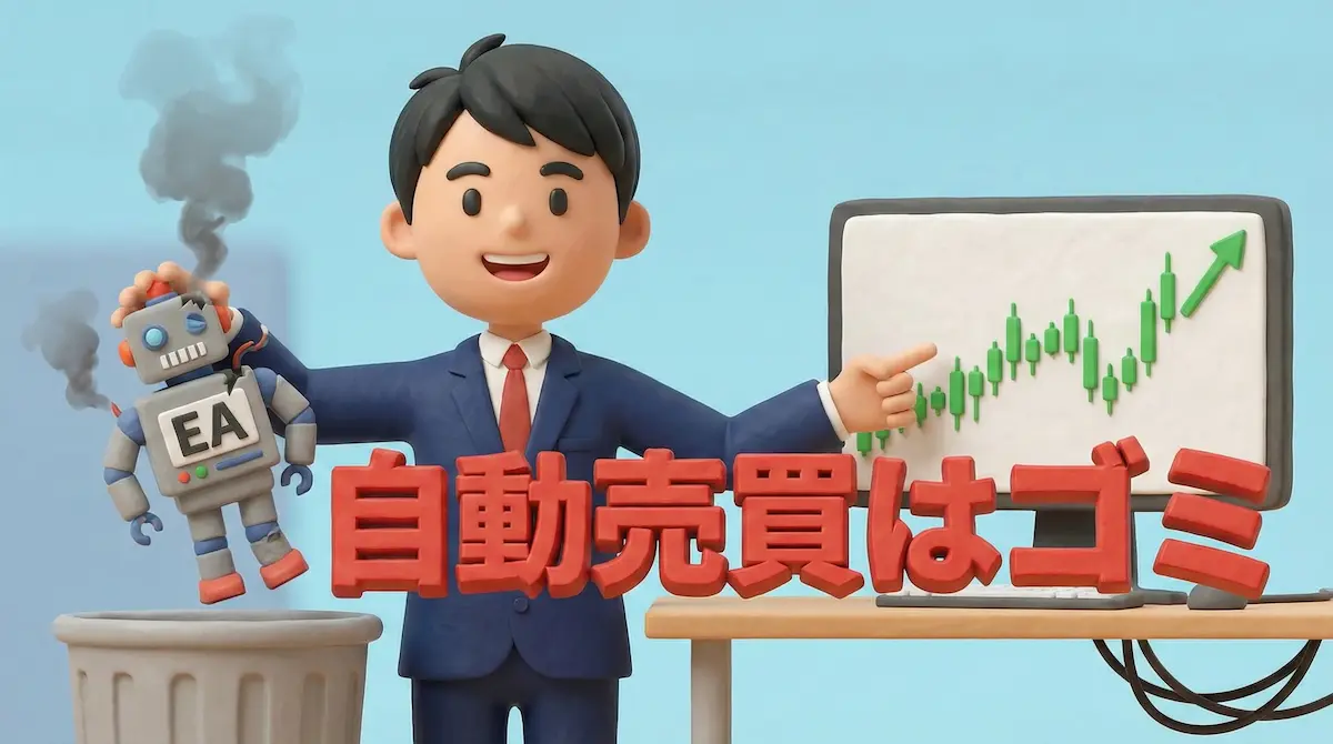 それを数万円であなたに売る理由は、「そのツールがゴミだから(=ツール代で稼ぐしかないから)」です。私が過去に自動売買(EA)の詐欺ツールに騙された実体験からも断言できますが、あれは100%ゴミです。