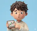 上昇トレンドの押し目チャートを指差すトレーダーゆたまるの3Dイラスト